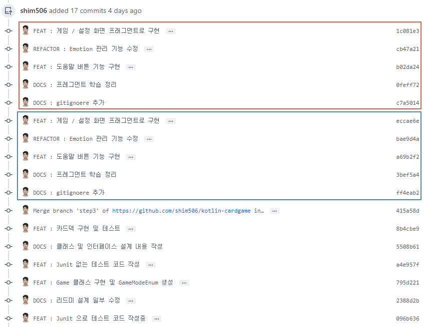 Rebase 를 하고 PR 을 보내는 와중에 아래와 같이 중복된 커밋을 마주 하게 되었다.