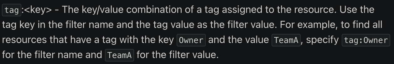 그러나 Boto3 Doc 를 찾아보니 아쉽게도 보안 그룹(DescribeSecurityGroups 객체)는 tag 를 제공하지만 내부 값으로 존재하는 보안 규칙(IpPermissions)에는 tag 값이 없었다.