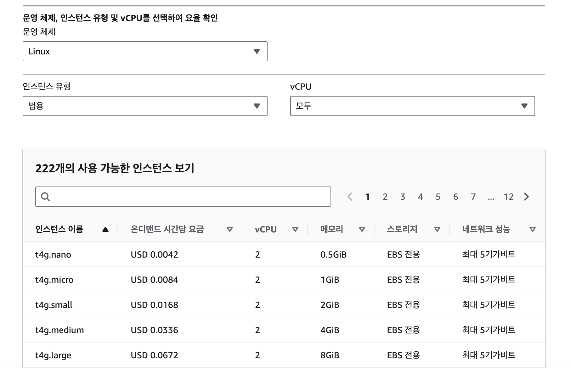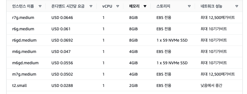 조건에 부합하는 것 중 가장 저렴한 r6g.medium 스펙으로 결정을 했다.