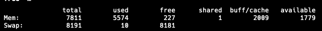 DEV 인스턴스 Swap 사용 여부 Buff/Cache 메모리 사용량 예상 적정 용량 t2.micro (1GB RAM) Swap 사용 높음 (647MB) 232MB 부족함 2GB m5.large (8GB RAM) Swap 거의 없음 2GB 여유 6GB - dev 서버의 t2.micro 는 2GB 의 Ram 이 적정량으로 보이지만 dev 서버인 것을 고려하여 현상태 유지