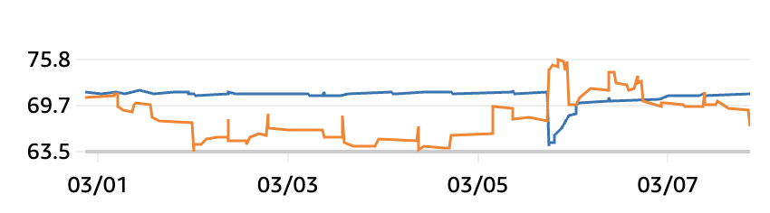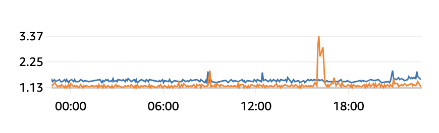 현재 CPU 사용량은 두 인스턴스(m5.large / t2.micro) 모두 아주 작다.