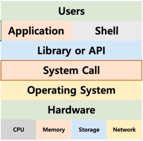 - user 혹은 응용프로그램이 직접적으로 kernel 에 접근할 수 없으므로 kernel 에서 수행해야할 기능을 시스템 콜을 통해 수행한다.