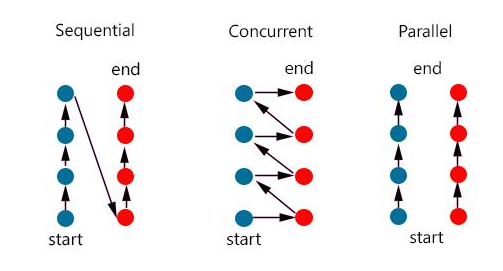 이중에서 동시성은 하나의 작업을 일정 시간동안 진행하고 또다른 작업을 일정시간 수행하는 형태이고