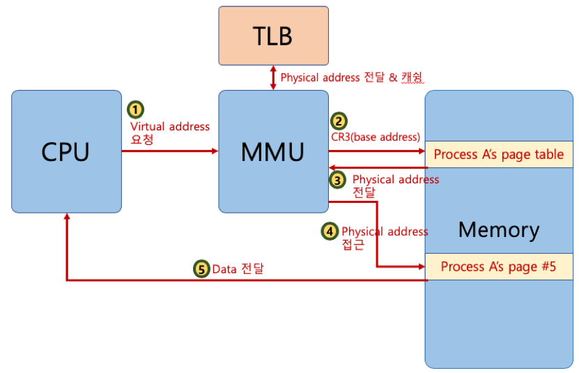 - CPU 에서 가상 주소의 실행을 통해 데이터를 요청하게됨
