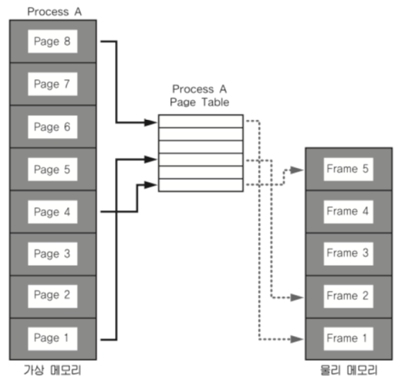 - 프로세스 구조에 데이터들은 가상 주소로 매팽되고, 실제 해당 주소에서 데이터를 실행(읽고 / 쓸때) 만 물리 주소로 바꾸어 주면 된다.